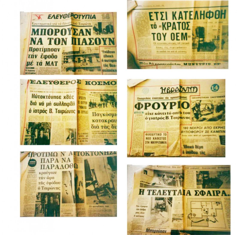 Η επιχείρηση που κατέληξε σε αιματηρή επιδρομή και στο θάνατο του Τσιρώνη έγινε το βράδυ της 11ης Ιούλη του ’78. Μερικές μέρες πριν στην εφημερίδα «ΤΟ ΒΗΜΑ» 7 Ιούλη γραφόταν σαν ερωτηματικό για το «ζήτημα Τσιρώνη ότι υπονομεύεται η έννοια του κράτους από το γεγονός ότι οι αρμόδιες αρχές επιτρέπουν στον ιδιότυπο αυτό γιατρό όχι μόνο να ζει υπό το κράτος ποινικής ασυλίας (αφού δικαστικές αποφάσεις σε βάρος του για αδικήματα του κοινού ποινικού νόμου παραμένουν ανεκτέλεστες), αλλά και να μεταβάλλεται σε ελευθέρως δρώντα, στην περιοχή του Παλ. Φαλήρου ελεύθερος σκοπευτής. Ονόμασε το διαμέρισμά του Κράτος, έχει προσβάλλει ή προσβάλλει καθημερινά δέσμη από άρθρα του ποινικού νόμου, αλλά ο «πυροβολητής με την μπέρτα» έχει εξασφαλίσει το ακαταδίωκτο».