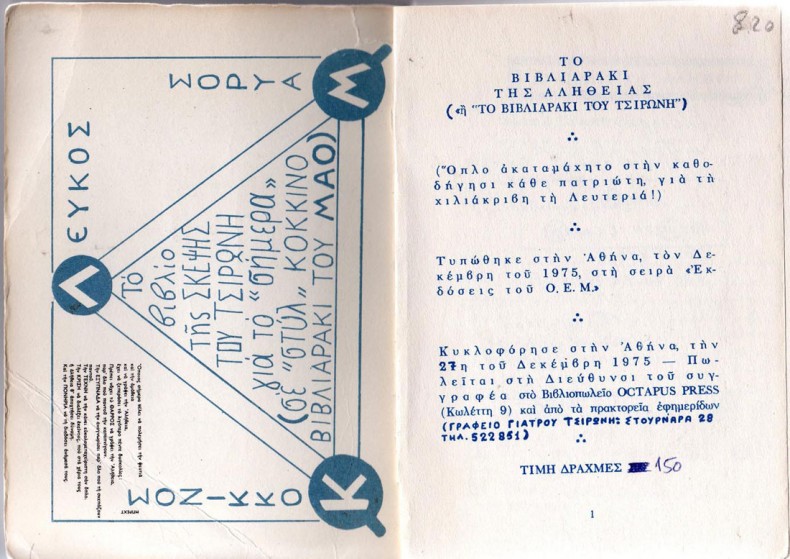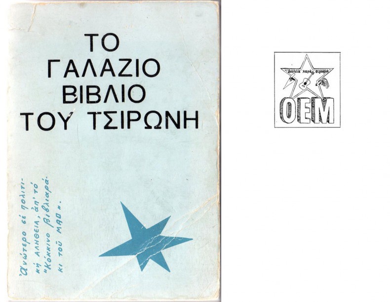 Όσοι από σας που διαβάζετε αυτό το άρθρο έχετε το Γαλάζιο βιβλίο του Τσιρώνη, μη το φυλάτε σαν αρχείο ή σαν πολύτιμο αντικείμενο ενός δολοφονημένου, δίνετέ το για ανάγνωση, φωτοτυπήστε το σε πολλά αντίτυπα, ώσπου και άλλοι να καταλάβουν ότι αγώνας δεν σημαίνει μόνο ένταξη στα κόμματα, σημαίνει και προσωπική παρόρμηση που μπορεί να φτάσει στους περιορισμένους τοίχους ενός διαμερίσματος από μπετόν στο Παλιά Φάληρο.