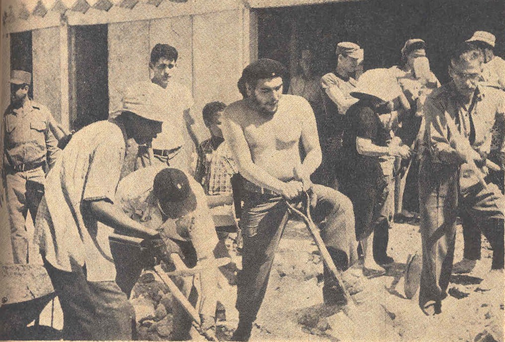 Στη φωτογραφία: Ο Ερνέστος “Τσε” Γκουεβάρα, υπουργός οικονομικών, δουλεύει για την ανέγερση ενός κτιρίου, έξω απ’ την Αβάνα.